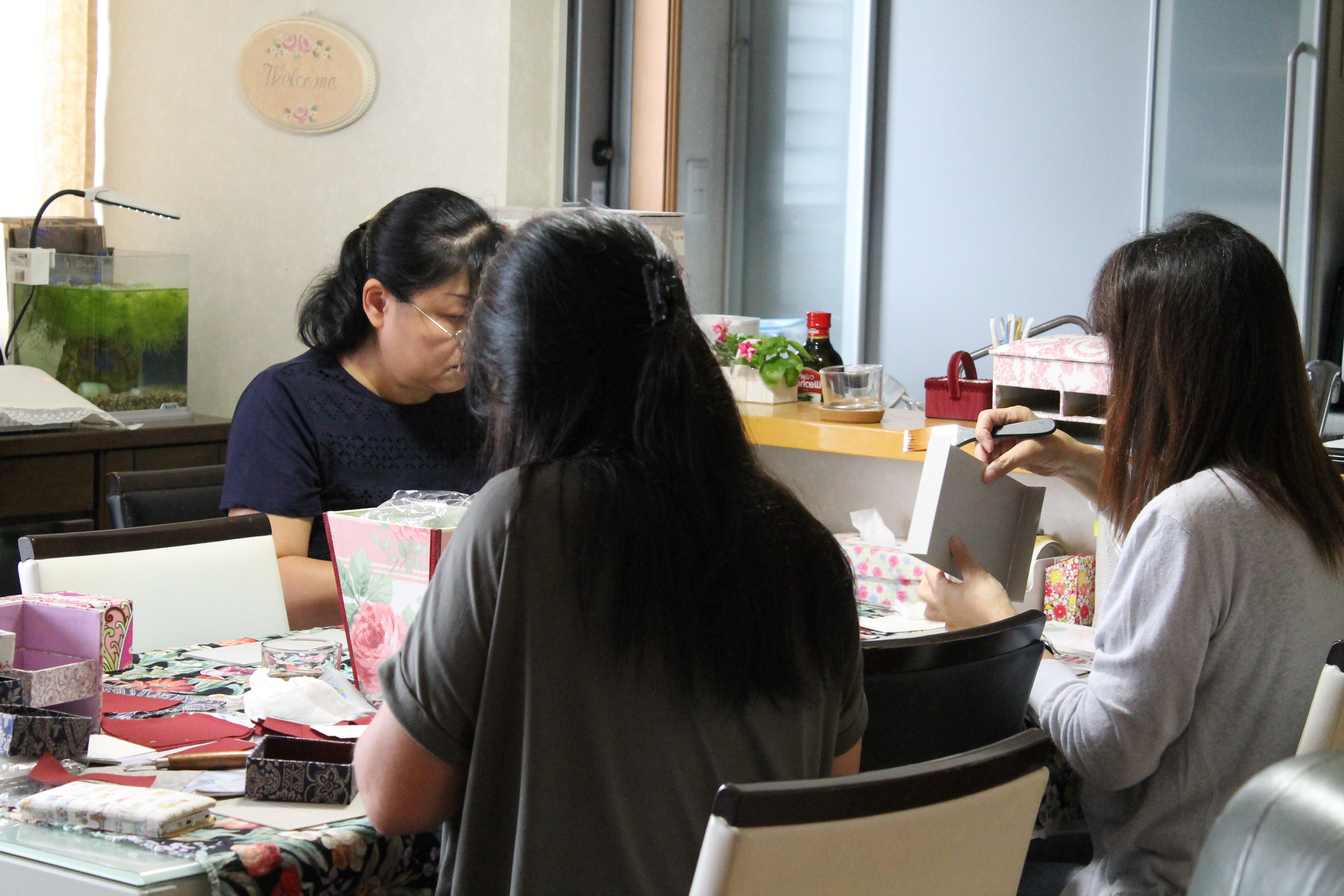 当教室では、フランスの伝統工芸「カルトナージュ」と、日本の美意識を感じられる「インテリア茶箱」を通して、暮らしを彩るハンドメイドの楽しさをお届けしています。